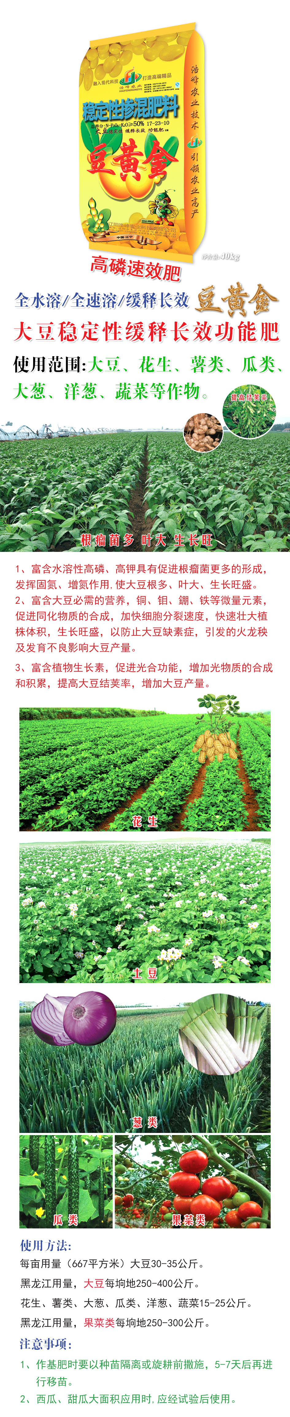 1、富含水溶性(xing)高燐、高鉀具有促進(jin)根癅菌更多的形成,髮揮固(gu)氮、增氮作(zuo)用(yong),使大荳(dou)根多、葉大、生長旺盛。